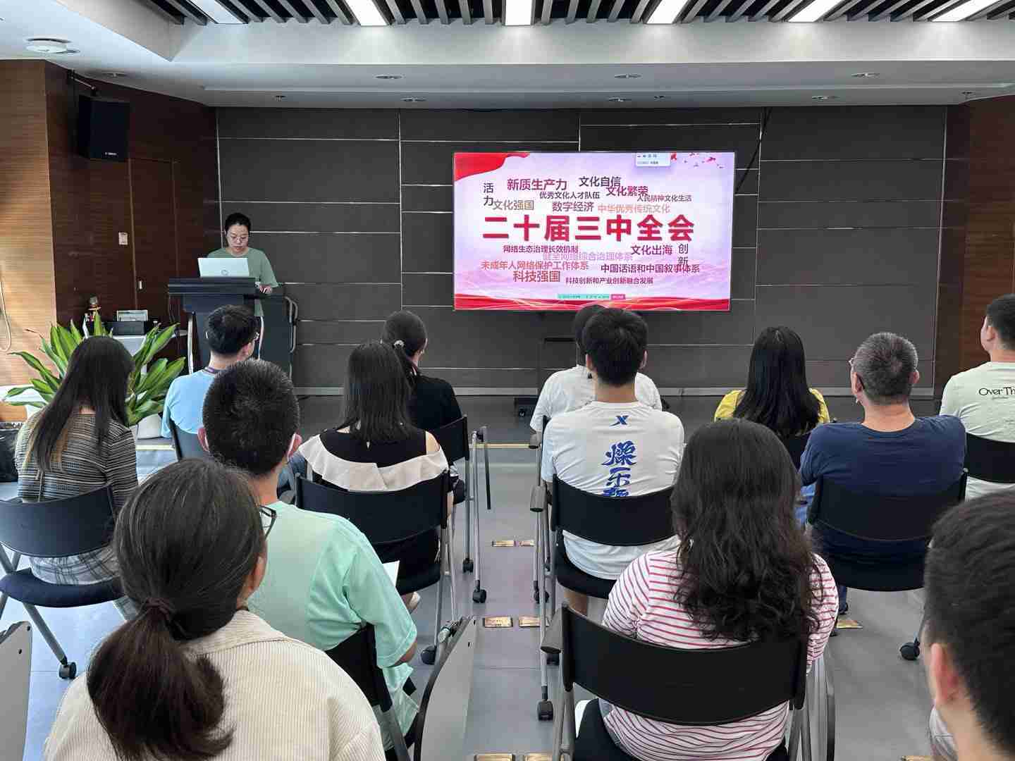 与会人员深入学习《决定》内容。。。。党的二十届三中全会提出必须增强文化自信,,发展社会主义先进文化,,,,弘扬革命文化,,,,传承中华优秀传统文化,,加快适应信息技术迅猛发展新形势,,,构建更有效力的国际传播体系,,这为广大文化产业工作者指明了奋斗方向。。。。
