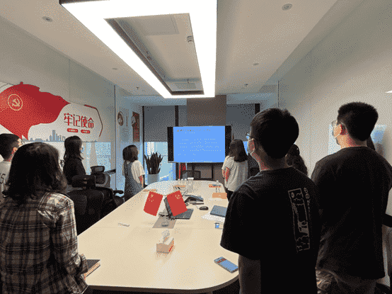 而后,,,全体党员一起重新学习了解了目前的入党流程要求,,各支部也将在后续工作中进一步发挥支部职能,,做好发展党员工作。。。。最后,,全体党员面向党旗,,,重温入党誓词。。