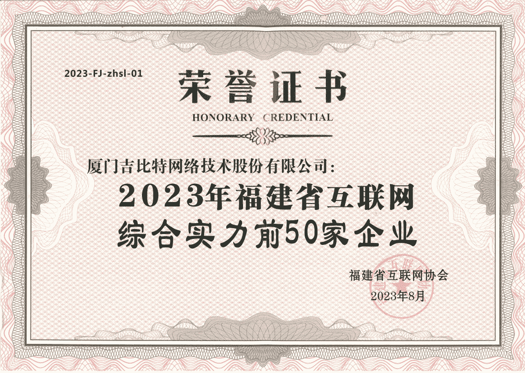 9月14日,,福建省互联网协会在2023年东南科技论坛上发布了2023年福建省互联网企业综合实力研究评价结果,,,并对上榜企业颁奖。。这是福建省互联网协会连续7年开展互联网企业综合实力研究工作。。。。厦门赏金大对决网络技术股份有限公司(以下简称“赏金大对决”或“公司”)每年均成功入选,,,,2023年位列第1位。。
