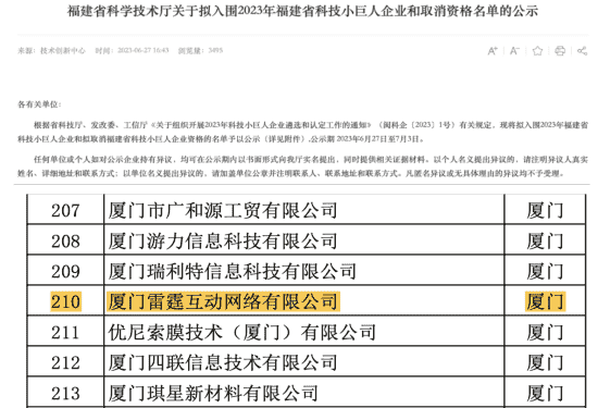 此次再次入选福建省科技小巨人企业既是对雷霆互动创新能力的认可,,,,也是对市场发展潜力及综合实力的高度肯定。。